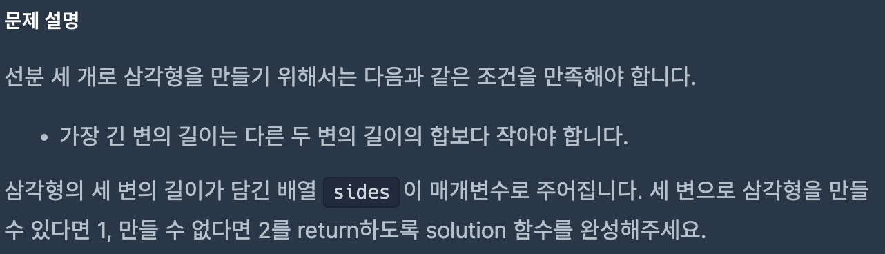 return sides[2] < sides[0]+sides[1]? 1 : 2;