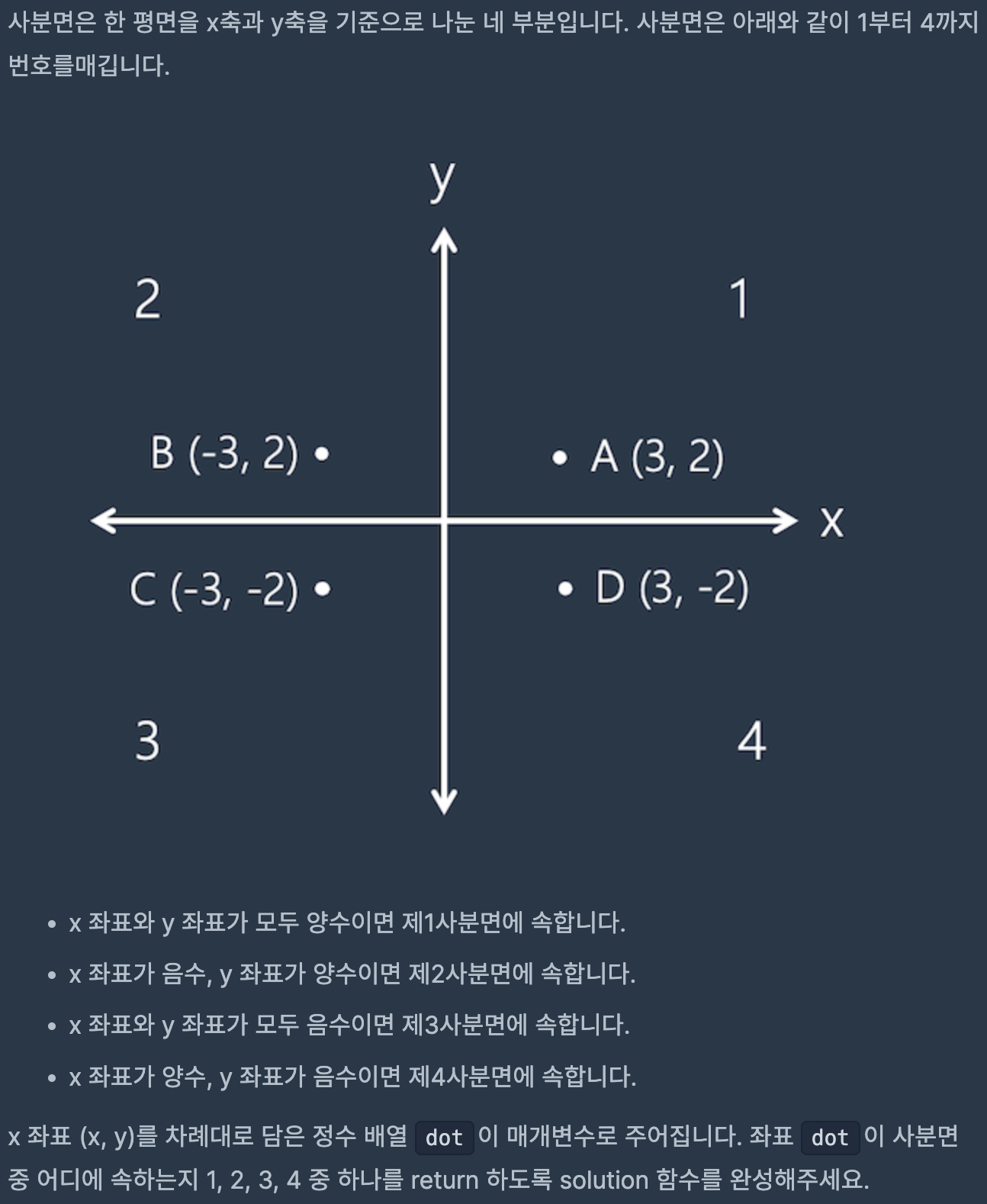 문제에서는 x축과 y축만 존재하므로 dot[2]인 배열이다. 그중 x좌표값이 dot[0]이고, y좌표값은 dot[1]이 된다.